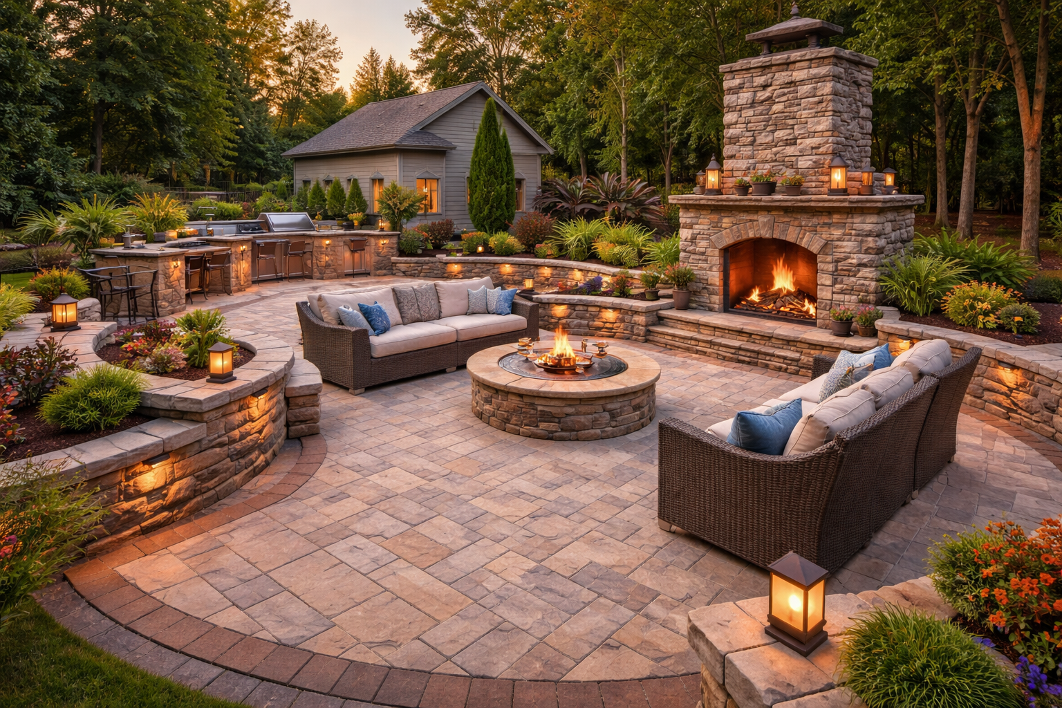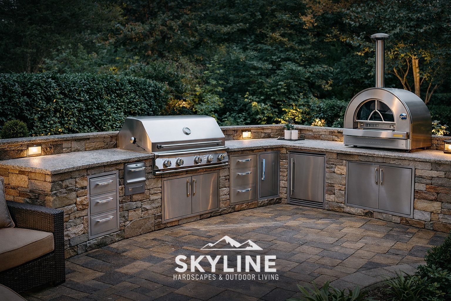 At Skyline Hardscapes & Outdoor Living, a division of Skyline Hearth & Fire, we design and build custom outdoor kitchens and complete outdoor living spaces throughout: